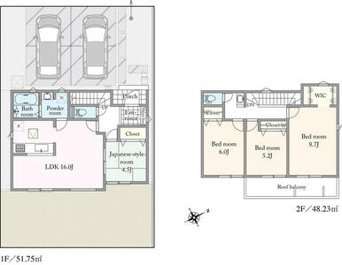 | 設備 | システムキッチン 床下収納 モニタ付インターホン ディンプルキー シャッター雨戸 複層ガラス 浄水器 IHクッキングヒーター 3口以上コンロ 浴室暖房 浴室乾燥機 ルーフバルコニー 人感センサー付照明 火災警報器(報知機) 温水洗浄便座 トイレ2ヶ所 | ||